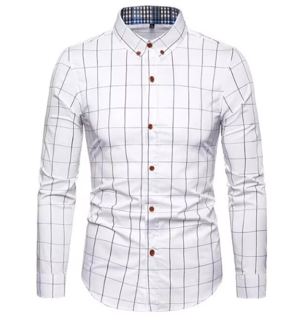 チェック柄長袖スリムフィットシャツ(ホワイト)