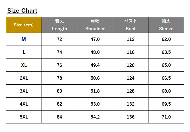 ・サイズ:M、L、XL、2XL、3XL、4XL、5XL