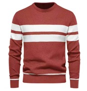 このストライプ・セーターは、カラーブロックデザイン、通気性のあるポリエステル/ナイロン素材、編み構造が特徴です。グレー、ブルー、グリーン、ブラックなど複数の色があり、標準的な厚さで快適に着用できます。
