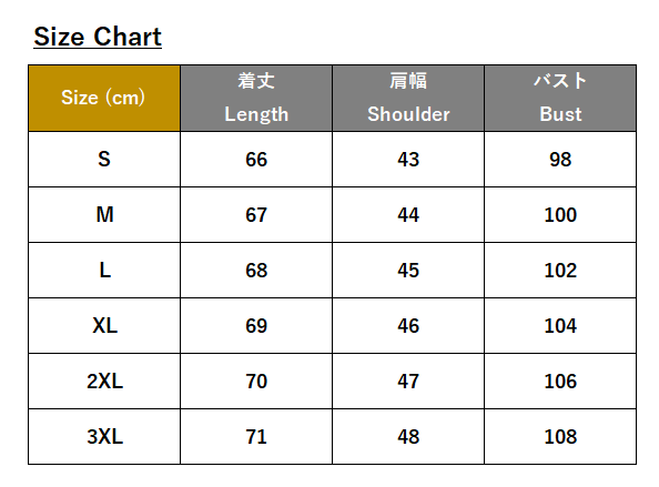 ・サイズ:S、M、L、XL、2XL、3XL