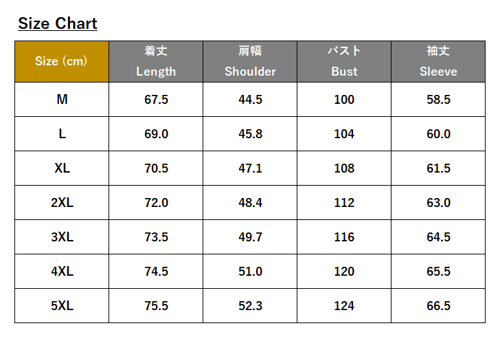 ・サイズ:M、L、XL、2XL、3XL、4XL、5XL