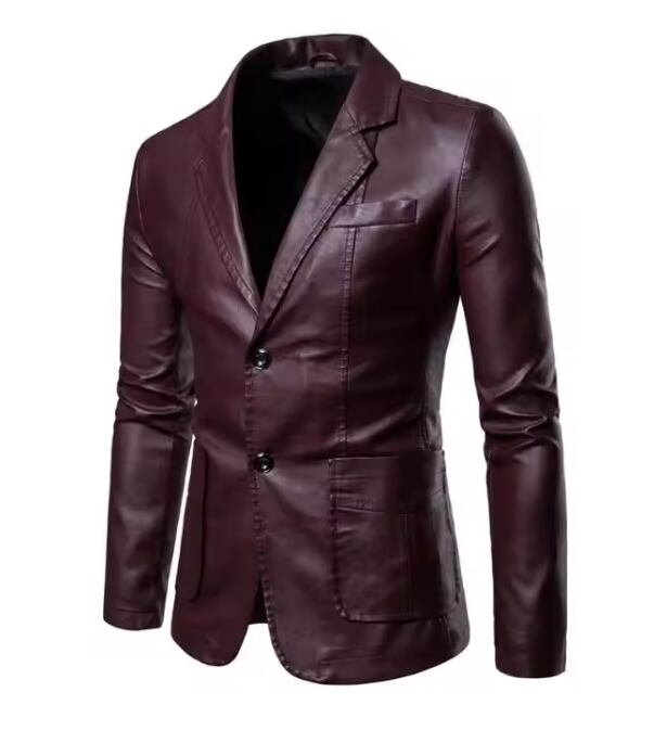 ビンテージ・ PUフェイクレザージャケット(バーガンディ)