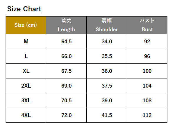 ・サイズ:M、L、XL、2XL、3XL、4XL