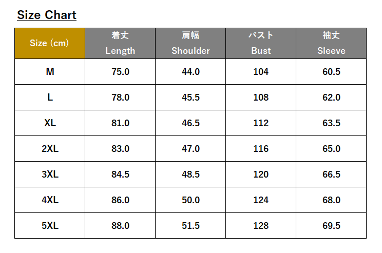 ・サイズ:M、L、XL、2XL、3XL、4XL、5XL