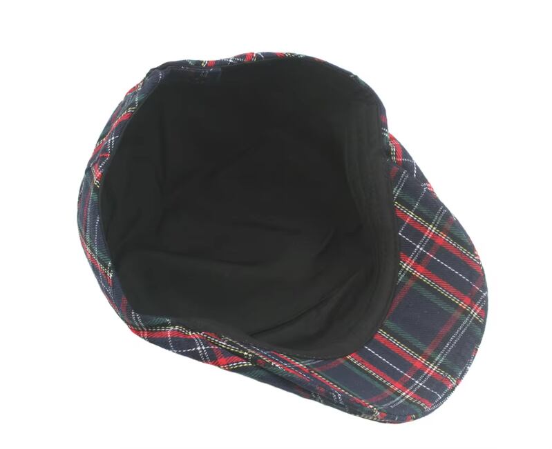 このタータンチェック・ハンチング帽は、ビンテージ感のあるクラシックなタータンチェック柄で、アジャスタブルなスナップボタンが後ろに3つ付いています。フォーマルからカジュアルな装いまで、幅広いスタイルにアクセントをつけるワンアイテムです。