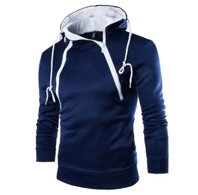 フード付きダブルジッパー・プルオーバー(ブルー)