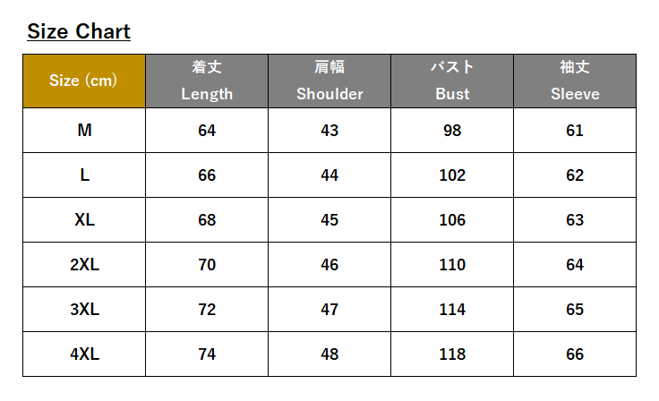 ・サイズ:M、L、XL、2XL、3XL、4XL