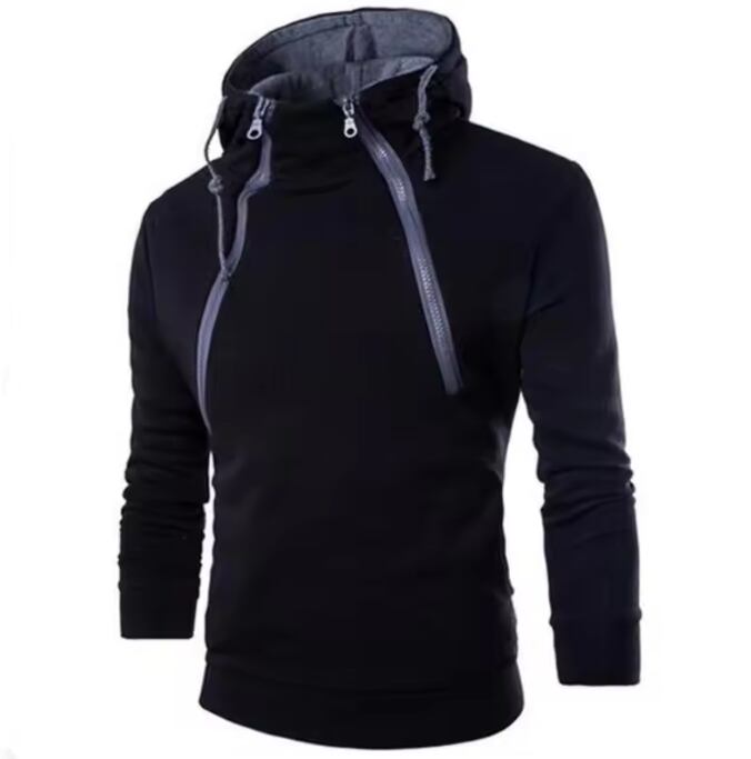 フード付きダブルジッパー・プルオーバー(ブラック)