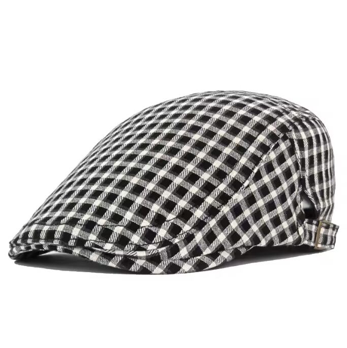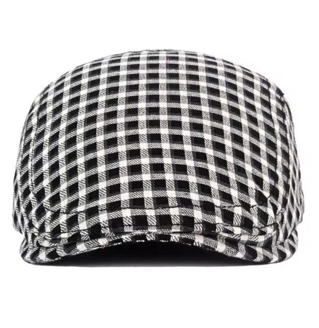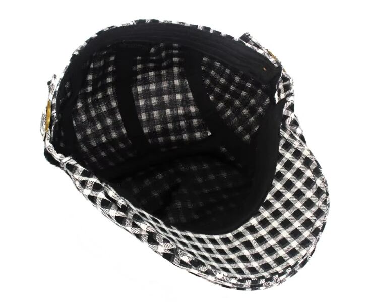 このクラシック・ハンチング帽は、オーソドックスなチェック柄で、アジャスタブルなスナップボタンがサイドに付いています。綿100%の素材で被り心地もよく、ファッション性&実用性ともに Good なワンアイテムです。