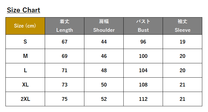 ・サイズ:S、M、L、XL、2XL