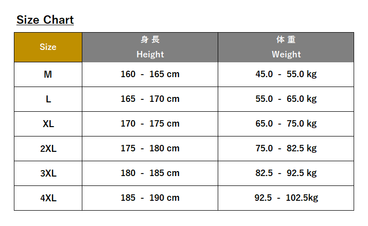 ・サイズ:M、L、XL、2XL、3XL、4XL