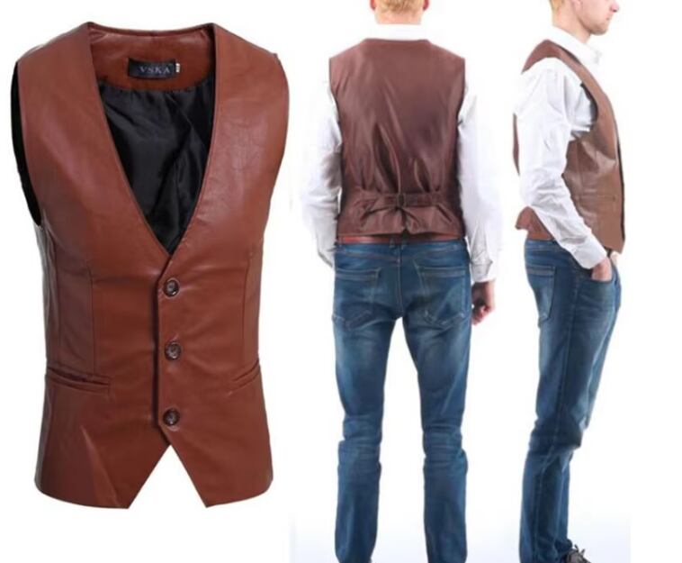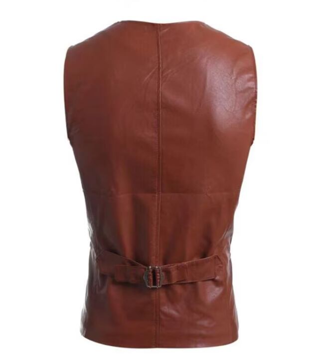 クラシックでありながらモダンな魅力を持つフェイクレザー・ベスト。英国スタイルのデザインで、シンプルながら洗練された印象を演出します。ライトな着心地で、カジュアルなコーディネートにも、よりフォーマルなスタイルにも適しています。