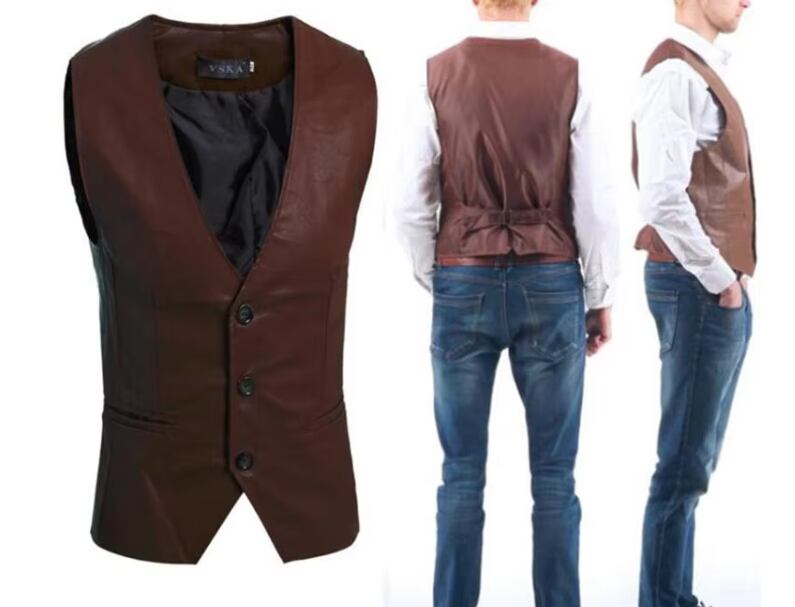 クラシックでありながらモダンな魅力を持つフェイクレザー・ベスト。英国スタイルのデザインで、シンプルながら洗練された印象を演出します。ライトな着心地で、カジュアルなコーディネートにも、よりフォーマルなスタイルにも適しています。
