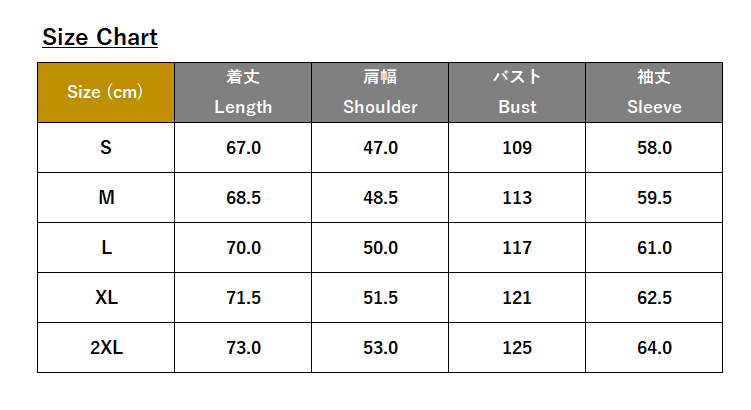 ・サイズ:S、M、L、XL 、2XL