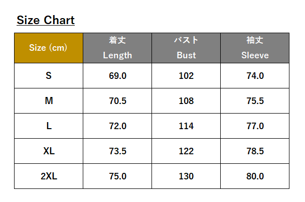 ・サイズ:S、M、L、XL、2XL