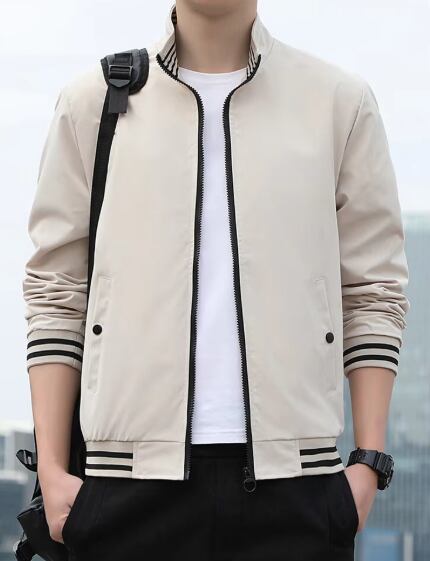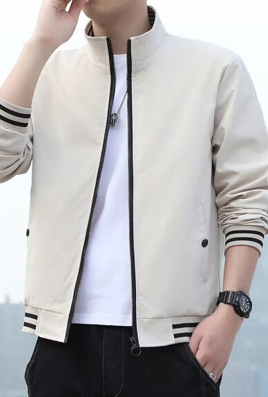 ストライプの縁取りがアクセントのデイリーカジュアル・ジャンパー。普段使いにぴったりなアイテムで、ジャストフィットで着るとより一層引き立ちます!