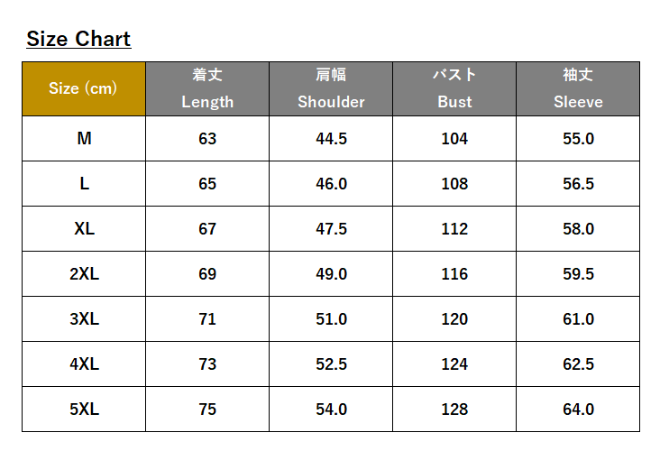 ・サイズ:M、L、XL、2XL、3XL、4XL、5XL