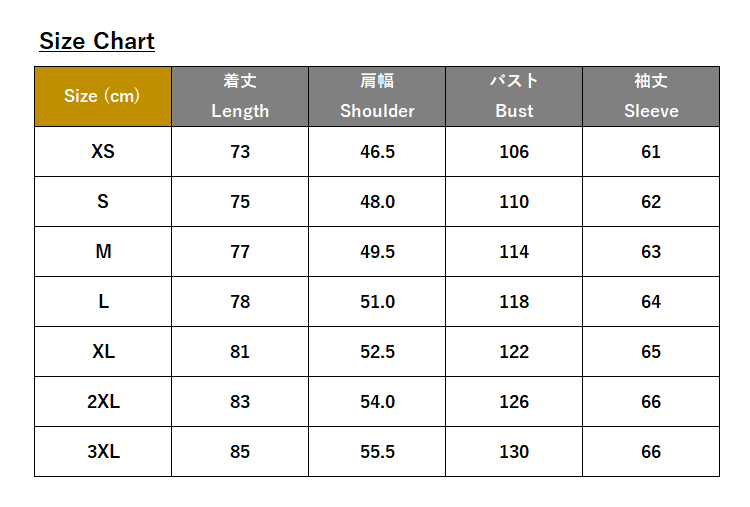 ・サイズ:XS、S、M、L、XL、2XL、3XL