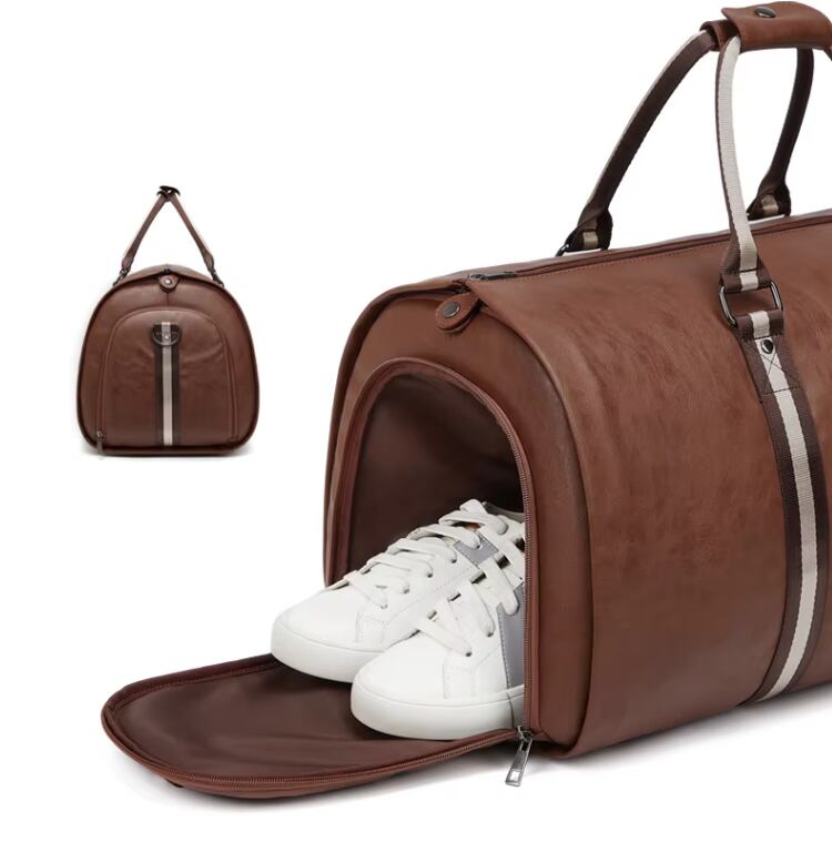 靴・スーツ収納可能-PUレザー・マルチトラベルバッグ(ブラウン)
